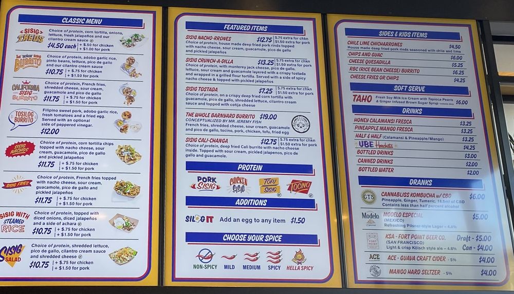 Welcome to Señor Sisig, where Filipino culinary tradition meets vibrant Mexican flavors. Located at 990 Valencia St, San Francisco, this trendy eatery offers a unique fusion menu that delights food lovers with every bite. Among the highlights, the Sisig Taco stands out, featuring your choice of protein nestled in a soft corn tortilla, garnished with fresh onions, lettuce, and a creamy cilantro sauce. For an even heartier option, the Señor Sisig Burrito bursts with flavors, wrapped in a flour tortilla with adobo garlic rice and pinto beans.